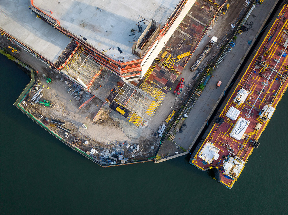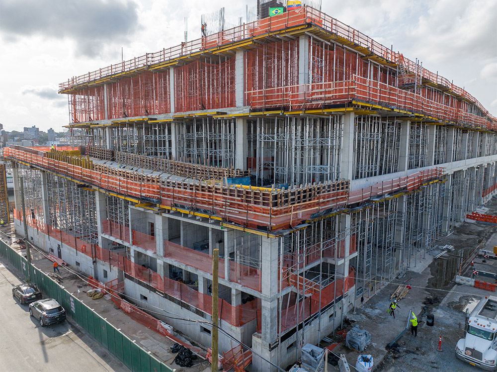 Centro Logístico Red Hook foi concebido para se adaptar a qualquer tipo de configuração logística, com vista para o passeio marítimo num bairro industrial histórico de Brooklyn. A ULMA participou neste ambicioso projeto com soluções de escoramento e cofragem de alto desempenho, destinadas à execução dos elementos estruturais do edifício. Todos os equipamentos são adequados e adaptados aos requisitos técnicos, normativos e de segurança da indústria da construção civil do país. Dada a magnitude e a complexidade da obra, foram realizadas várias reuniões técnicas para definir como cada sistema poderia ser aplicado da forma mais eficiente possível.