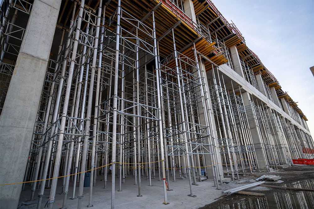 Além disso, foram incorporadas torres de escoras ALUPROP como suporte de capitéis e lajes a alturas até 10 metros. Fabricadas em alumínio, combinam alta capacidade de carga com peso leve, o que facilita a sua manipulação, montagem e transporte. A sua capacidade de empilhamento e reforço permite atingir grandes alturas, mantendo a segurança e a estabilidade estrutural, enquanto a sua versatilidade permite cumprir tanto os requisitos de escoramento inicial, como de reescoramento.