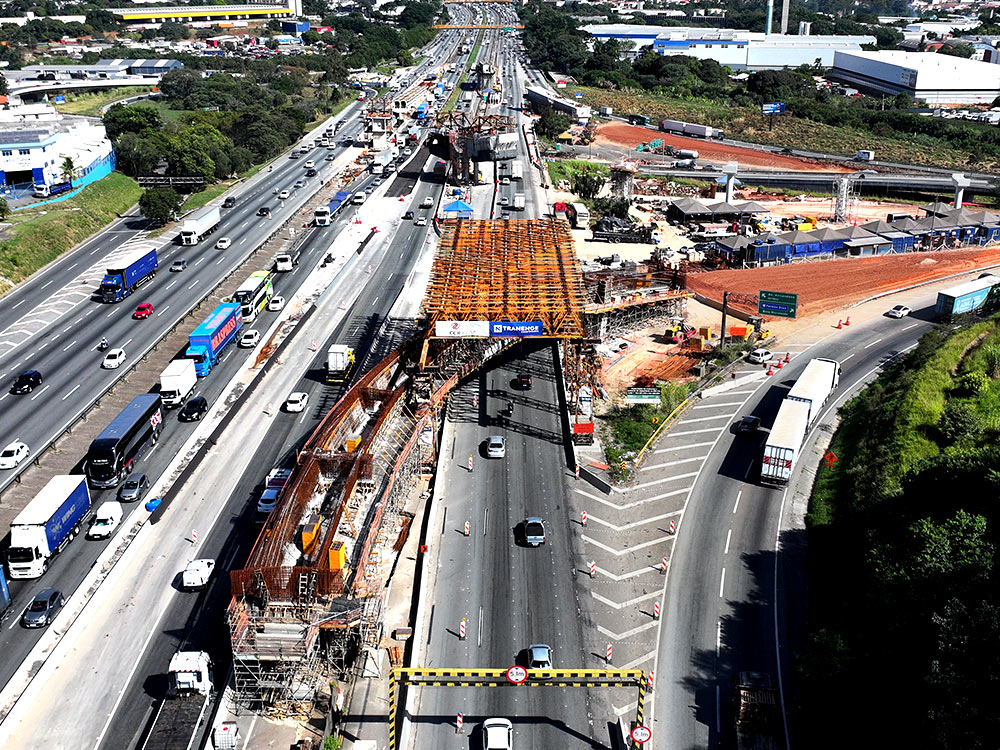 Um dos principais desafios foi construir viadutos com vãos de até 75 metros sem interromper o tráfego da Via Dutra, considerada a rodovia mais movimentada do Brasil. Este cenário exigiu soluções de cofragem, escoras e andaimes que combinassem segurança, precisão técnica e rapidez de execução