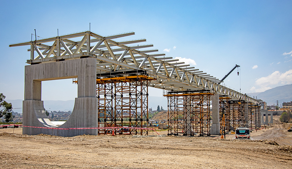 A ULMA tem oferecido soluções de cofragem e escoramento para a construção desta infraestrutura que é composta por estribos, pilares e postes. A super estrutura da ponte é composta por um tabuleiro misto de betão e aço, 11 vãos e uma área estirada de 140 m de comprimento e 18,50 m de largura.