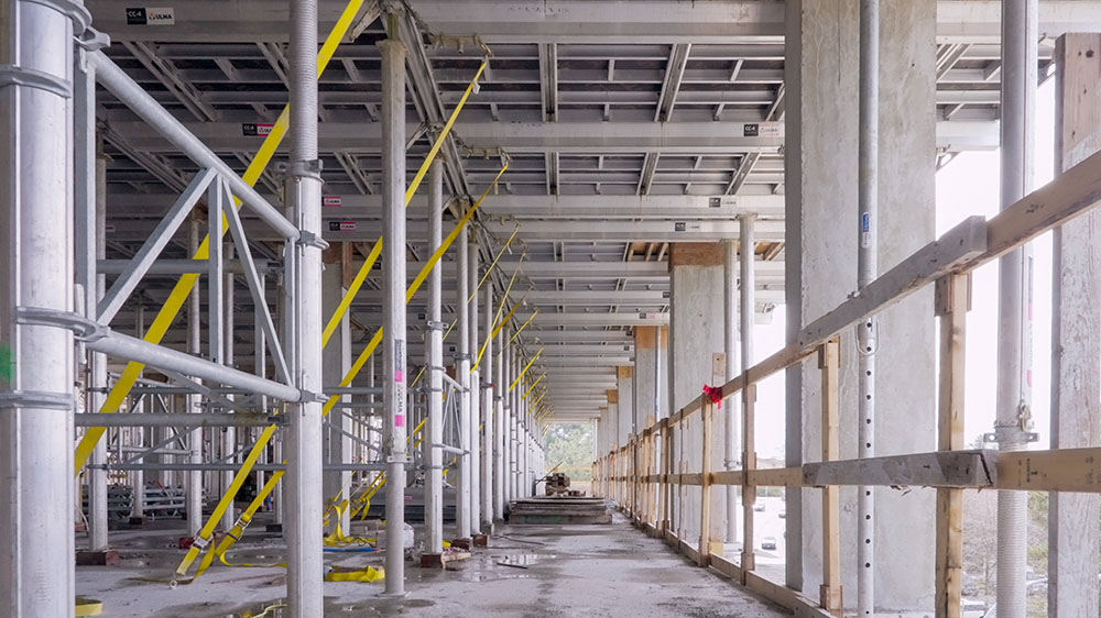 A ULMA, líder no fornecimento e fabrico de andaimes e cofragens, foi uma parte fundamental deste projeto, fornecendo o seu avançado sistema de painéis CC-4 e os prumos de alumínio ALUPROP para a execução de lajes em consola.