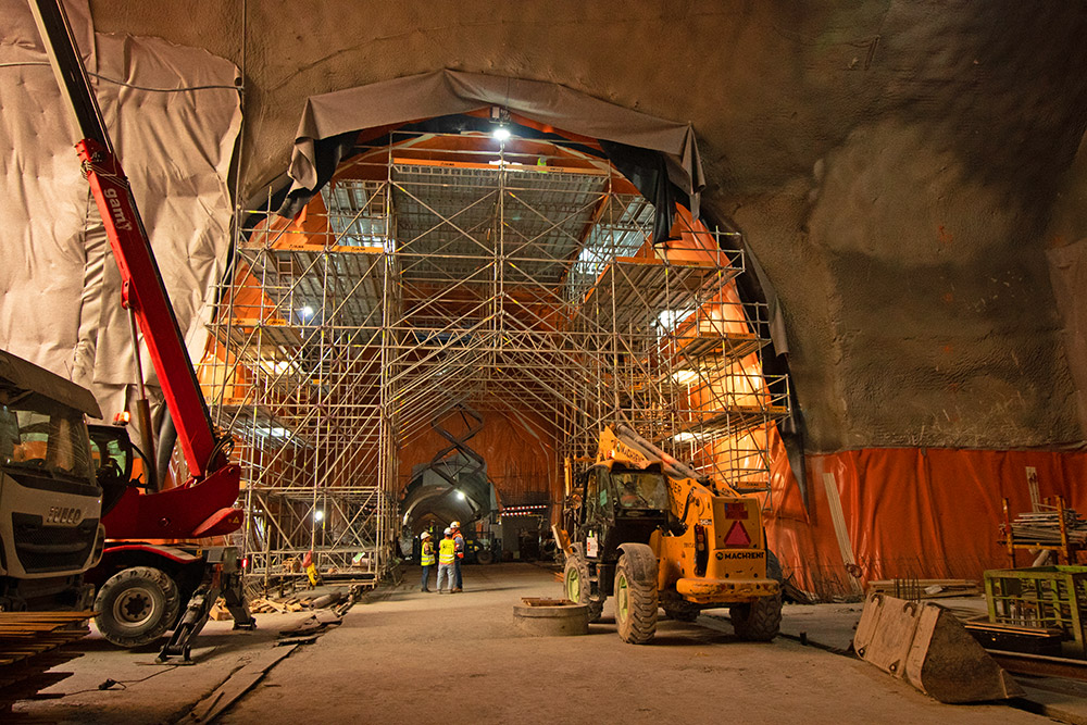 O principal desafio da construção urbana é a otimização do espaço. Neste projeto, a solução para a limitação das áreas de armazenamento no centro da cidade consistiu na reutilização inteligente de materiais e soluções no interior. A coordenação foi fundamental: seis carros de cofragem e andaimes operaram simultaneamente no túnel. Esta estratégia permitiu maximizar a eficiência num entorno com grandes restrições de espaço.