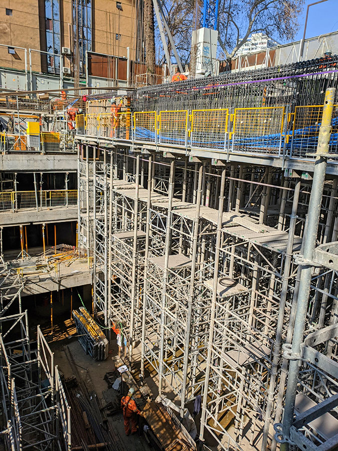 Soluções de cofragem, escoramento e andaimes ULMA para a construção do edifício Vicuña Mackenna 20 no Chile