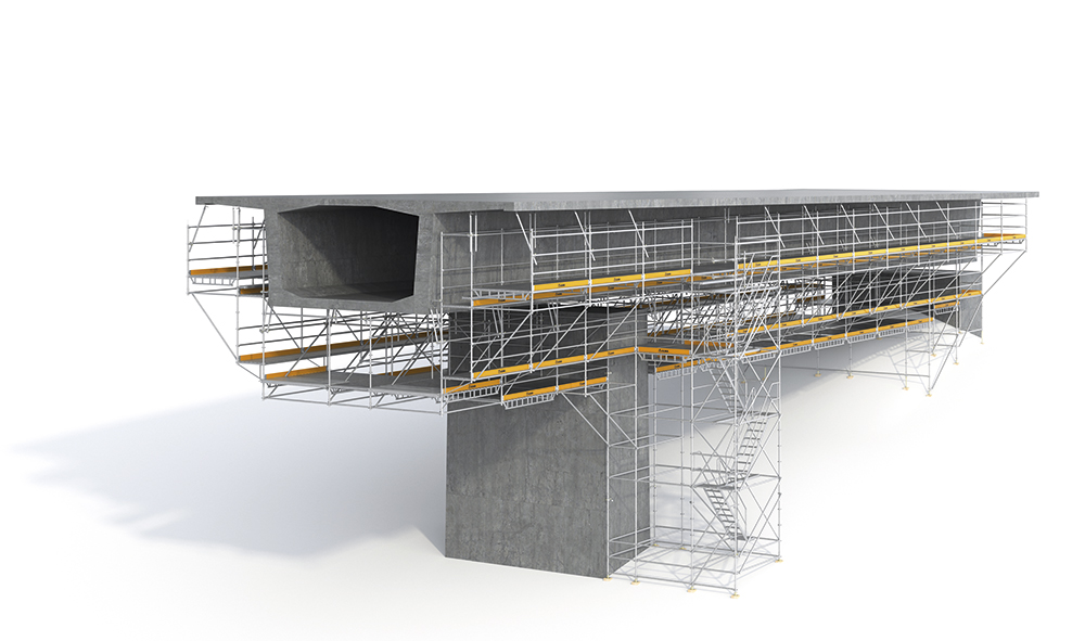 Nos trabalhos de melhora, manutenção e reforço estrutural de pontes, a diversidade de soluções do andaime multidirecional BRIO, como plataformas de trabalho, carros móveis, acessos temporários ou soluções especiais oferece uma solução segura para todo o tipo de estruturas de uma ponte.